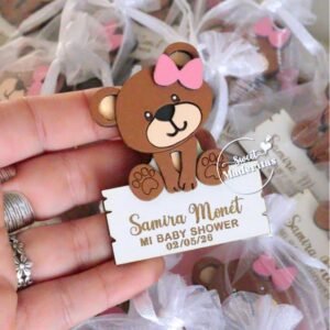 Hermosos recuerdos para baby shower. Se cumplió con todo lo especificado incluso solicité un cambio de tono el cual quedó perfecto. Solo como sugerencia se podría incorporar etiqueta o tarjetita personalizada en la bolsita para entregar a los invitados.