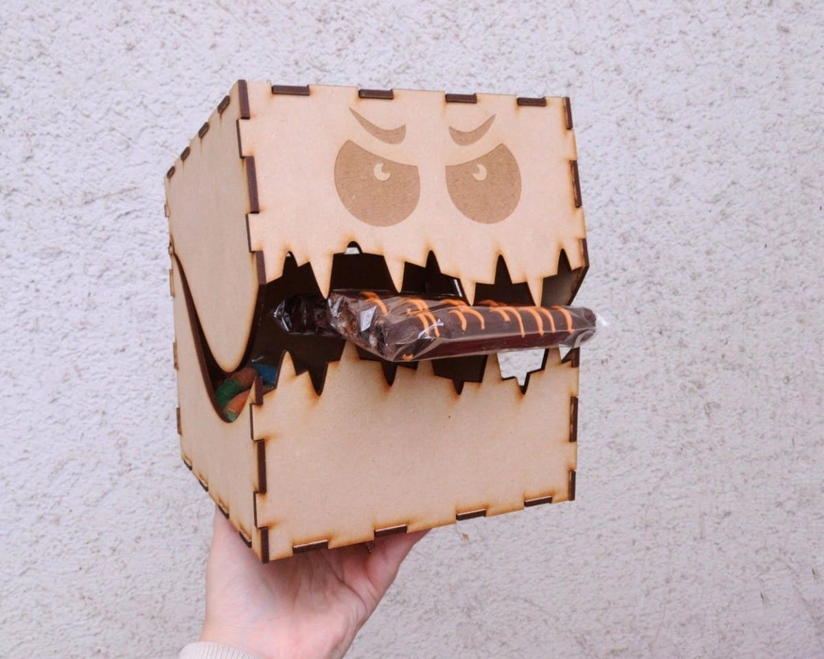 Caja halloween monstruo mdf , abrela y rellenala con un monton de dulces, cuidado que muerde!