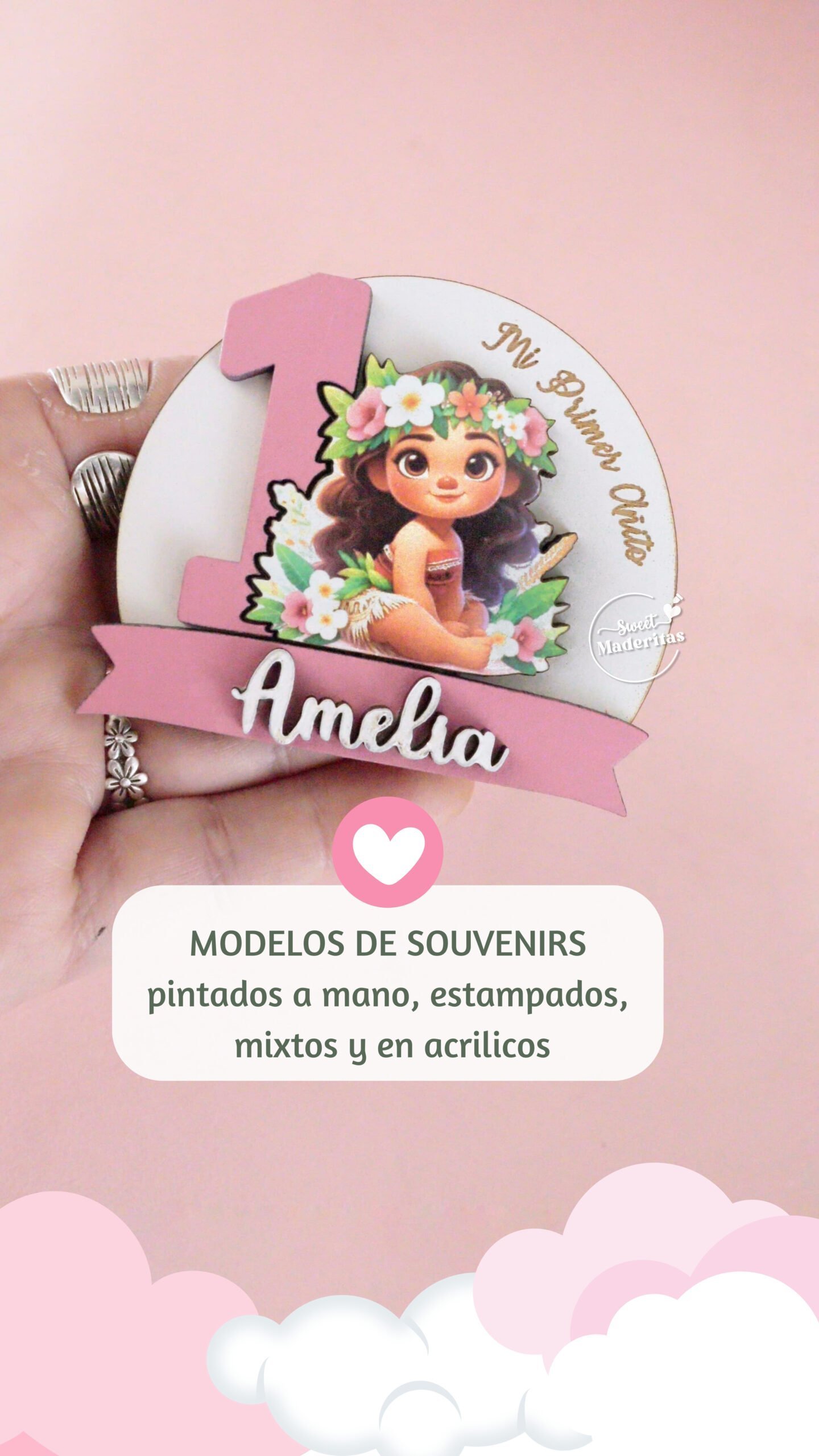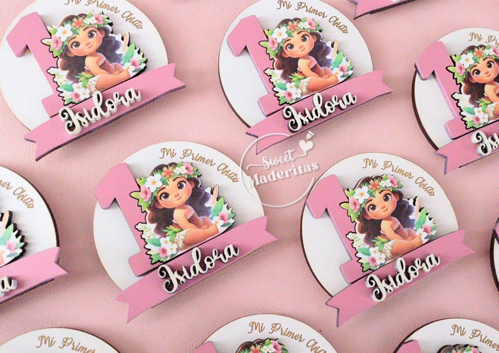 Recuerdos imantados de la pequeña Moana , para cualquier evento baby shower, cumpleaños y 1 nombre en relieve