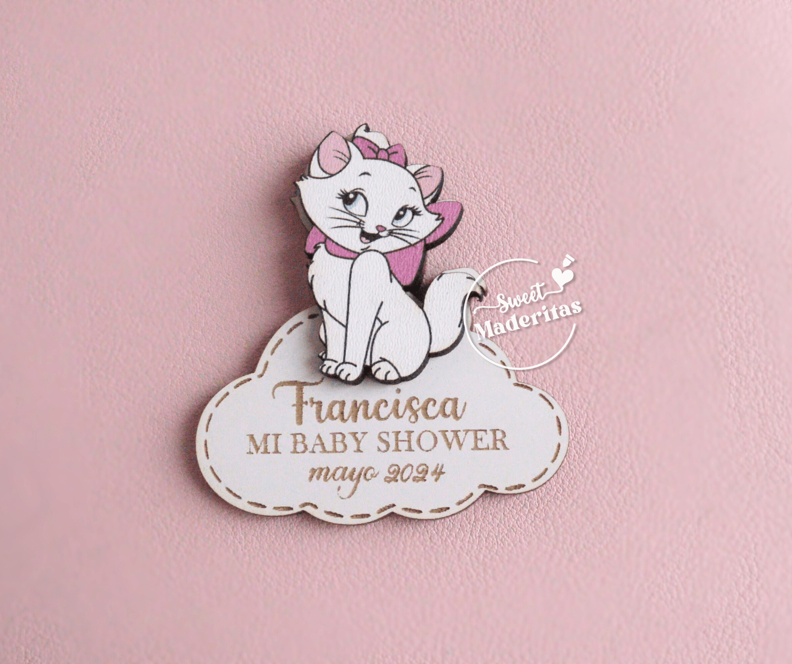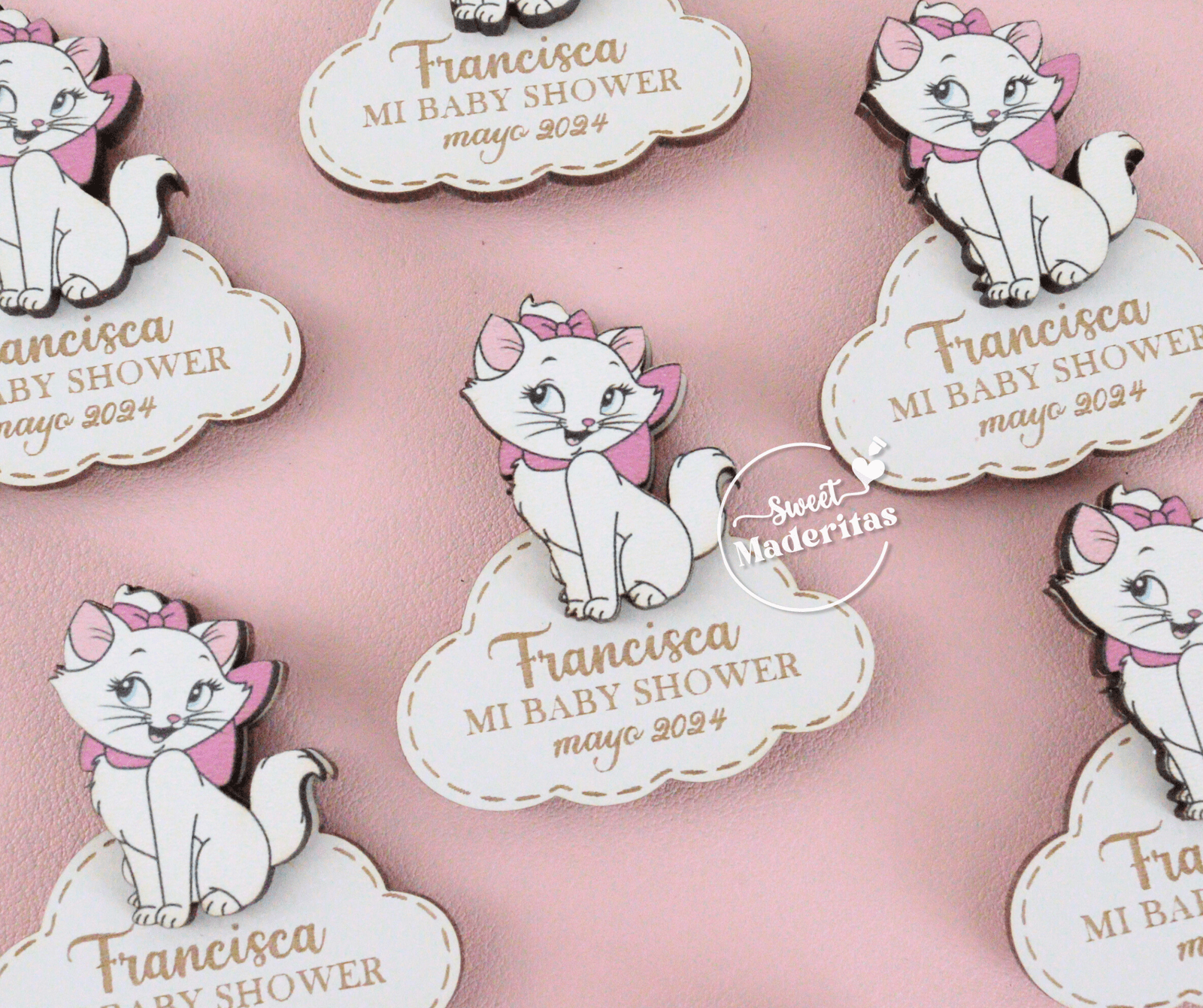 Recuerditos Cumpleaños ,baby shower imantados con figurita de gatita estampada , cada uno en su bolsita de organza listo para regalar 🎁
