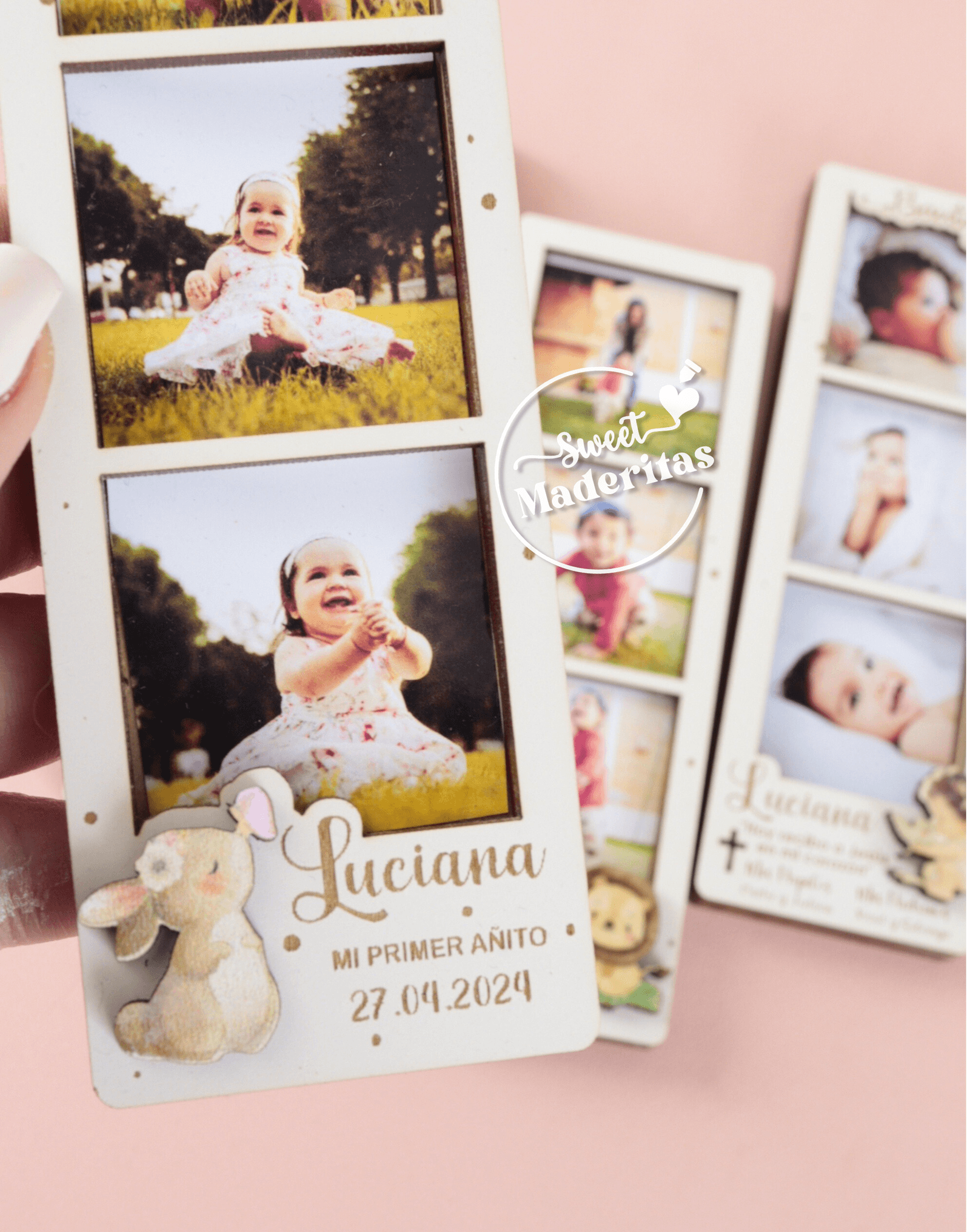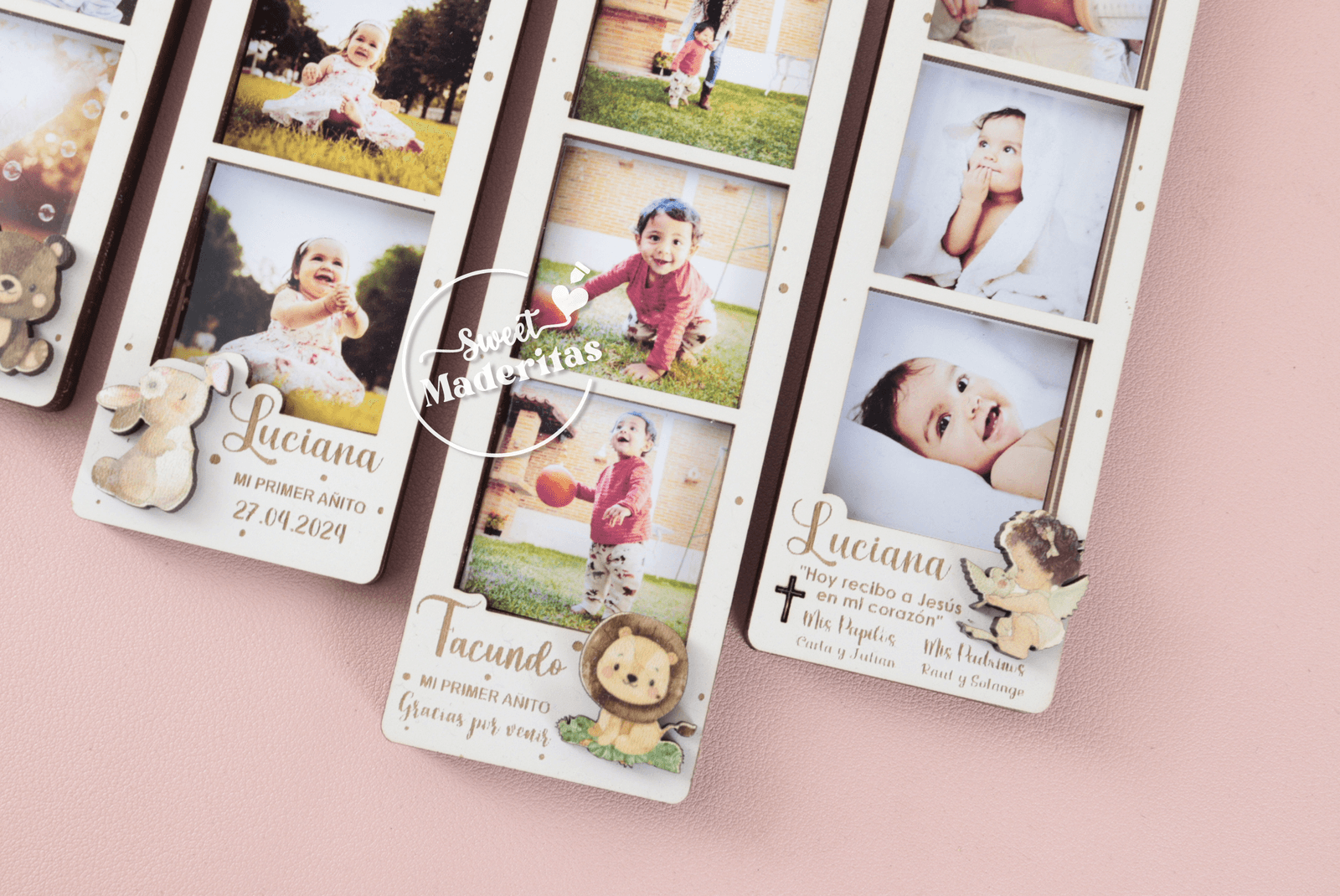 - Tamaño : 15 cm aprox de alto , con espacio para 3 fotitos