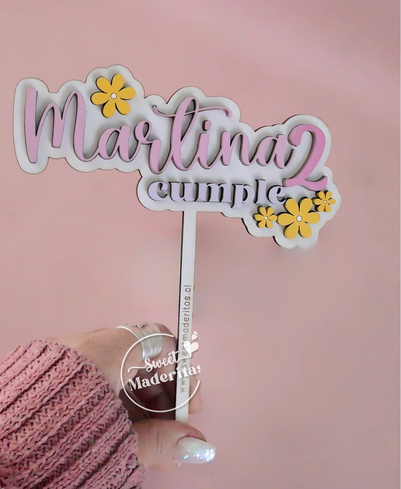 Celebra los cumpleaños de tus personas favoritas, con este cake topper personalizado feliz cumple con flores ,en material maderita.
